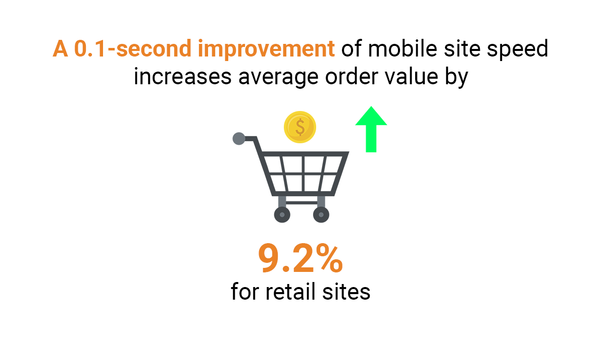 In the same 2020 Google study, evidence showed that a 0.1s mobile site speed improvement had a 9.2% increase in average order value.