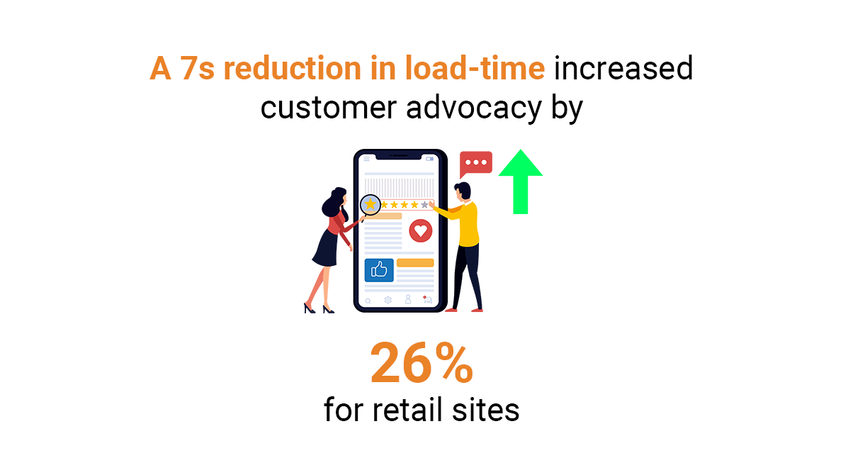 A 2019 study ran by Google in Denmark, demonstrated that on average consumers were 26% more willing to recommend an e-store if load-time was reduced from 10 seconds to 3 seconds.